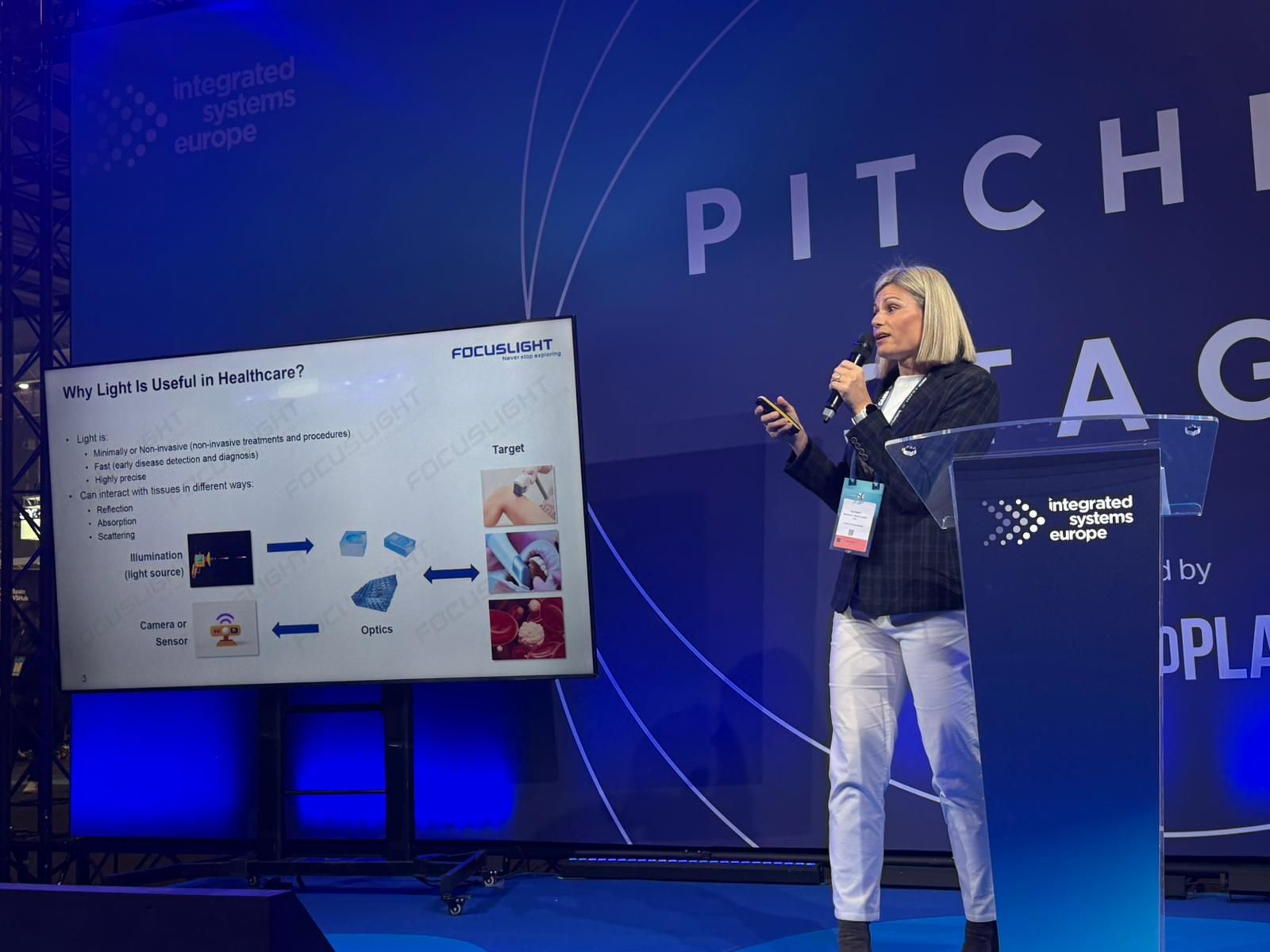 2026 年 2 月 3 日(周二)當(dāng)?shù)貢r(shí)間 15:15,炬光科技市場分析與戰(zhàn)略市場經(jīng)理 Auri Ripoll 出席在西班牙巴塞羅那Fira de Barcelona – Gran Via展館舉行的 Integrated Systems Europe (ISE) 2026 Pitching Stage技術(shù)報(bào)告專場并發(fā)表專題報(bào)告,題為 《Light-Based Innovation: Discovering the Role of Photonics in Healthcare》(光子技術(shù)創(chuàng)新在醫(yī)療健康領(lǐng)域的前沿探索)。本次報(bào)告深入探討光子技術(shù)如何重塑現(xiàn)代醫(yī)療應(yīng)用,并持續(xù)改善患者治療效果與健康管理水平。